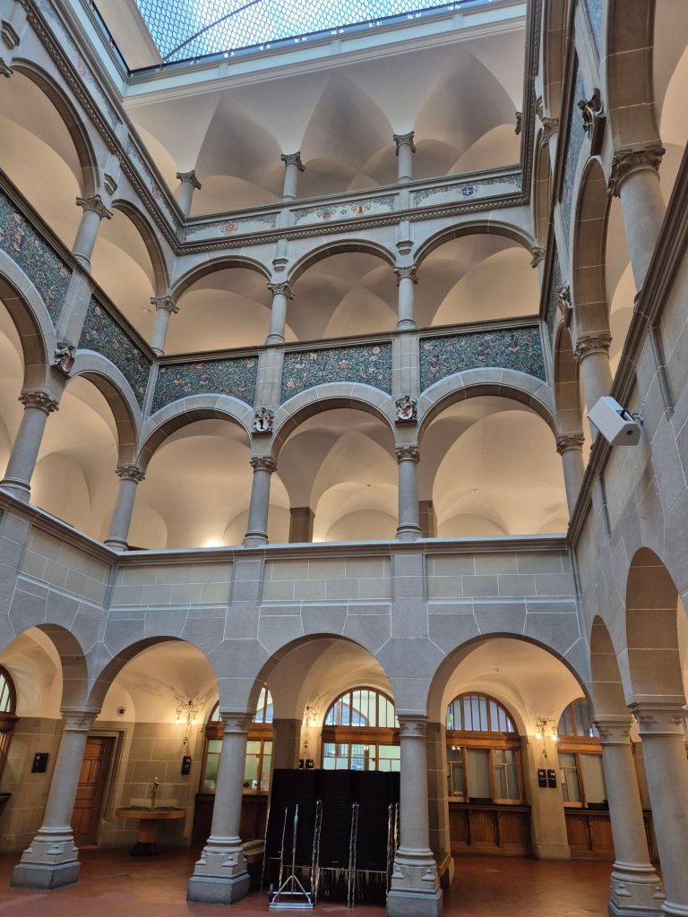 Die arkadenumgebene Gull-Halle bildet das architektonische Hauptmotiv im Innern des Stadthauses. Zwei Ansichten des alten Zürichs auf beiden Stirnseiten zieren die Wartehalle. Die Halle gestaltet sich, in Anlehnung an die italienische Renaissance, licht: Die Säulengalerien geben dem Raum etwas Beschwingt-Luftiges.