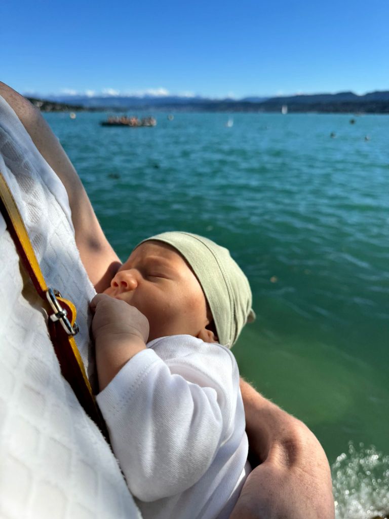 Umso wichtiger war heute daher unser Ausflug in die Badi Tiefenbrunnen. Wir sassen für knapp 1.5 Stunden im Schatten, haben die Aussicht auf den See und die Berge richtig geniessen können und mein absolutes Highlight waren 15 Minuten Schwimmen im See. Nur ich, mein Körper, meine Gedanken. Loslassen und wieder auf meine beiden Männer freuen, die die Zeit zum Bonding gut genutzt haben.