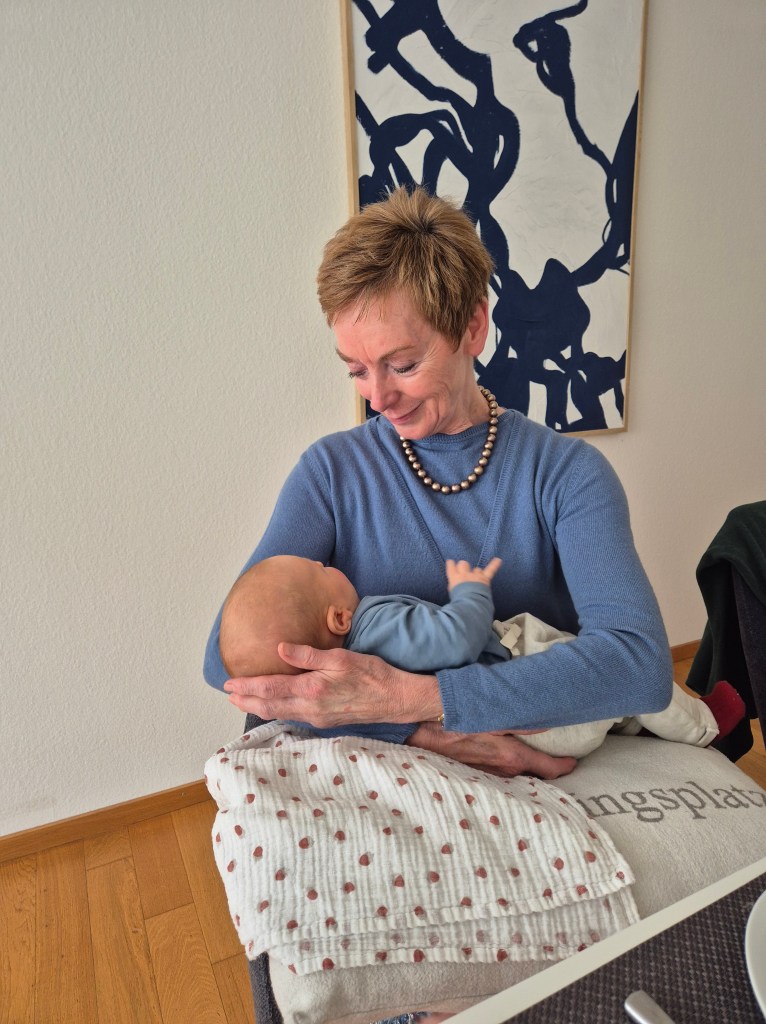Heute war ich bei Orell Füssli und Julian hing in der Trage. Natürlich hat er voll in die Windel gekackt und ich musste die Windel wechseln. Auf der Toilette stand ich in der Schlange und eine asiatische Frau sprach mich an, dass sie niemals mit so einem jungen Baby nach draussen gehen würde. Die ganze Verschmutzung, der Lärm, etc., man müsste die ersten 6 Monate doch zuhause bleiben zuliebe des Kindes! Unglaublich, wie übergriffig sie war! Und ich habe natürlich sofort auf der Toilette angefangen zu weinen, Julian war ganz ruhig, er merkt, wenn ich weine und wird dann ganz still. Und was mache ich anschliessend? Rufe meine Mutter an und heule ihr ins Telefon wie eine 15-Jährige…