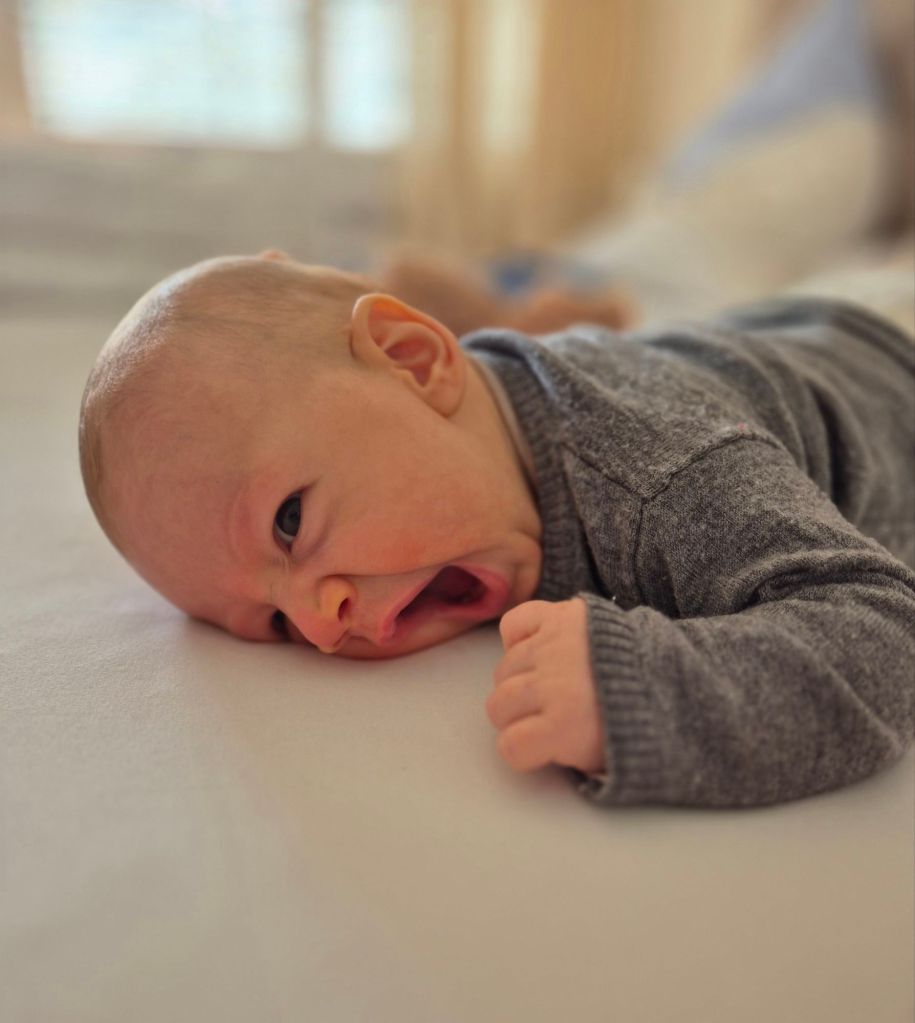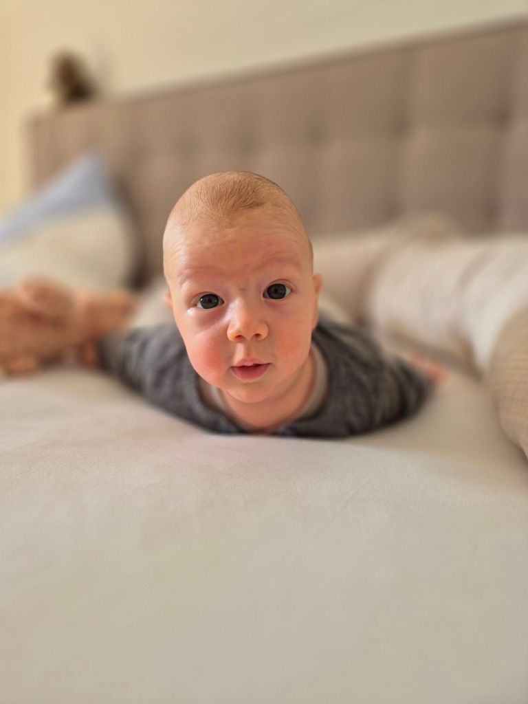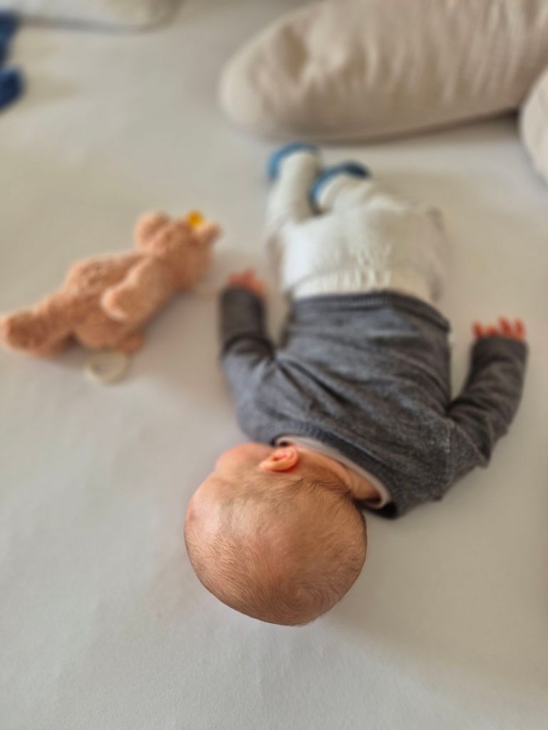 Den Tag haben wir wortwörtlich zuhause verschlafen. Julian hat 2-3 Stunden am Stück geschlafen und ist mir sogar direkt nach dem Stillen auf dem Arm eingenickt. Offenbar macht er gerade eine Entwicklung durch, denn nach dem Stillen konnte es nicht schnell genug ins Bett zurück gehen! 😄 und wir haben ein wenig auf dem Bauch geübt und Gymnastik gemacht.