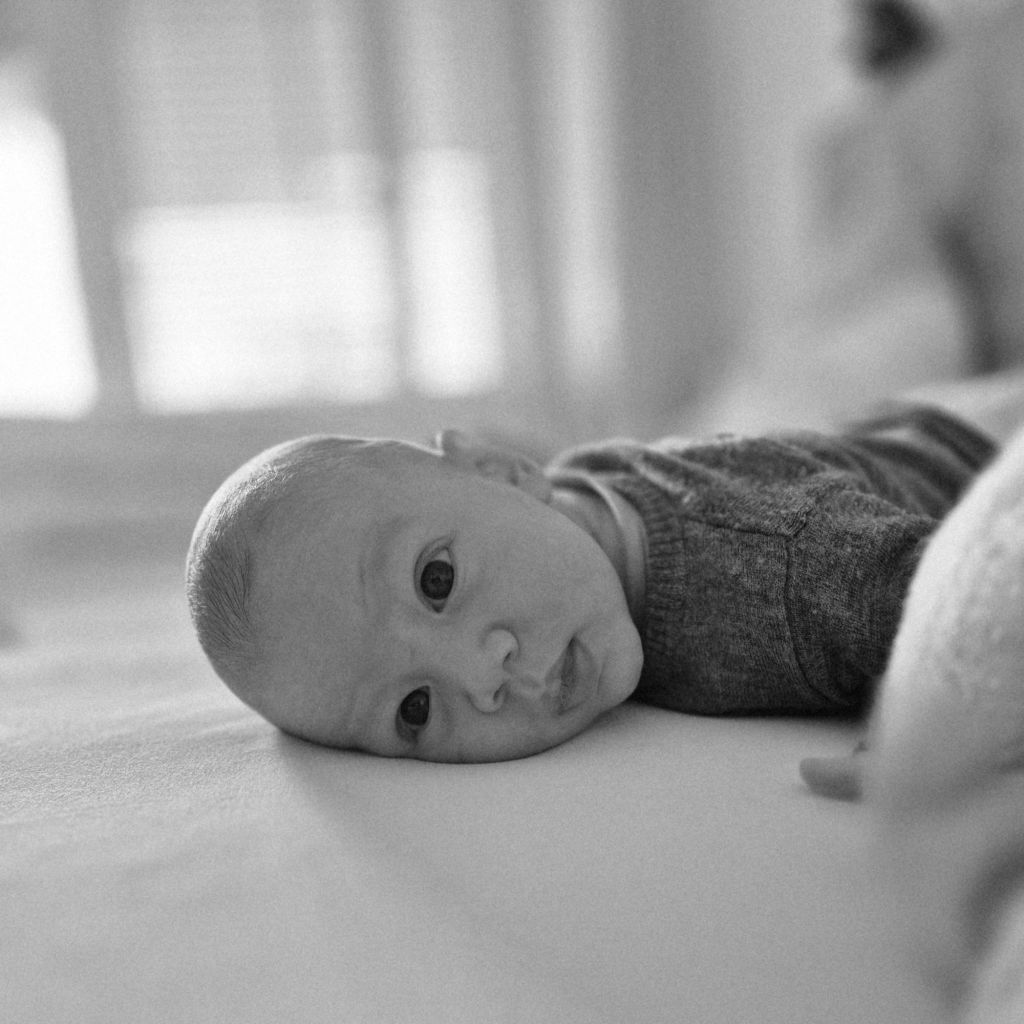 Er nimmt seine Umgebung immer klarer war, macht grosse Augen, schaut sich alles ganz genau an und dreht den Kopf dorthin, von wo er Stimmen hört.