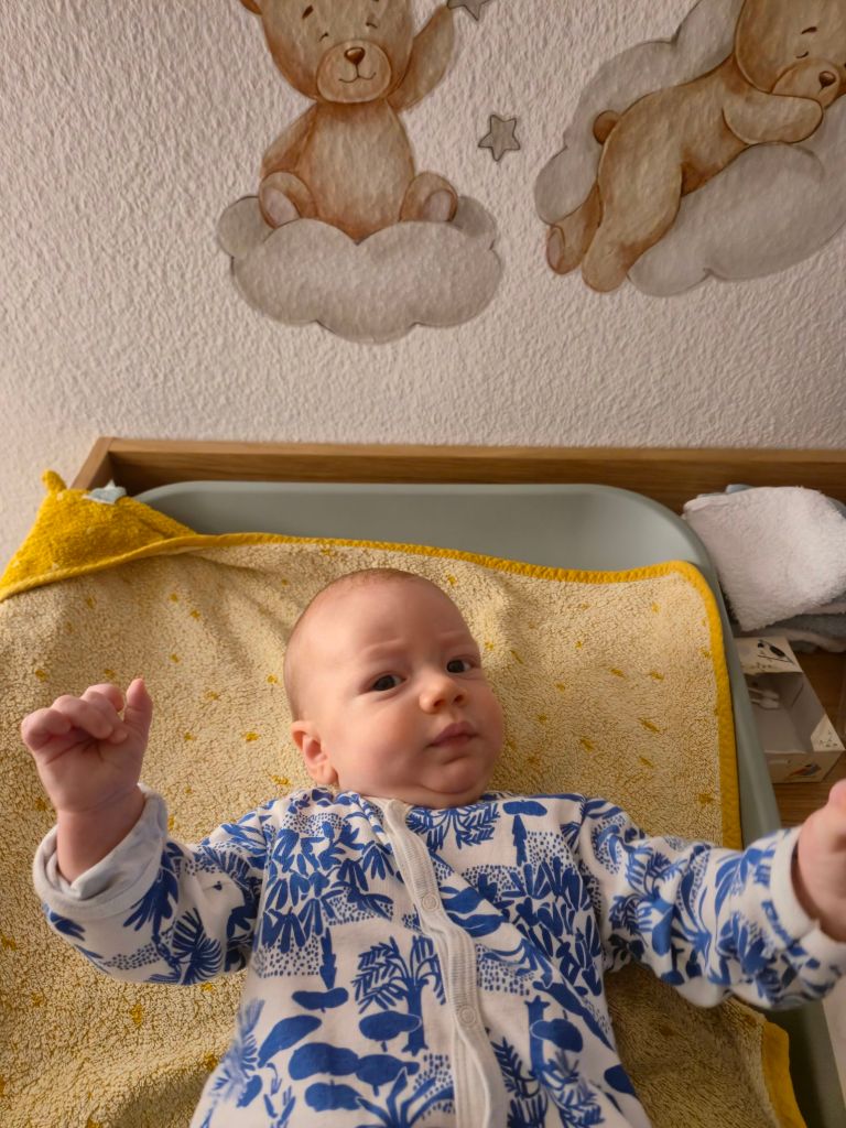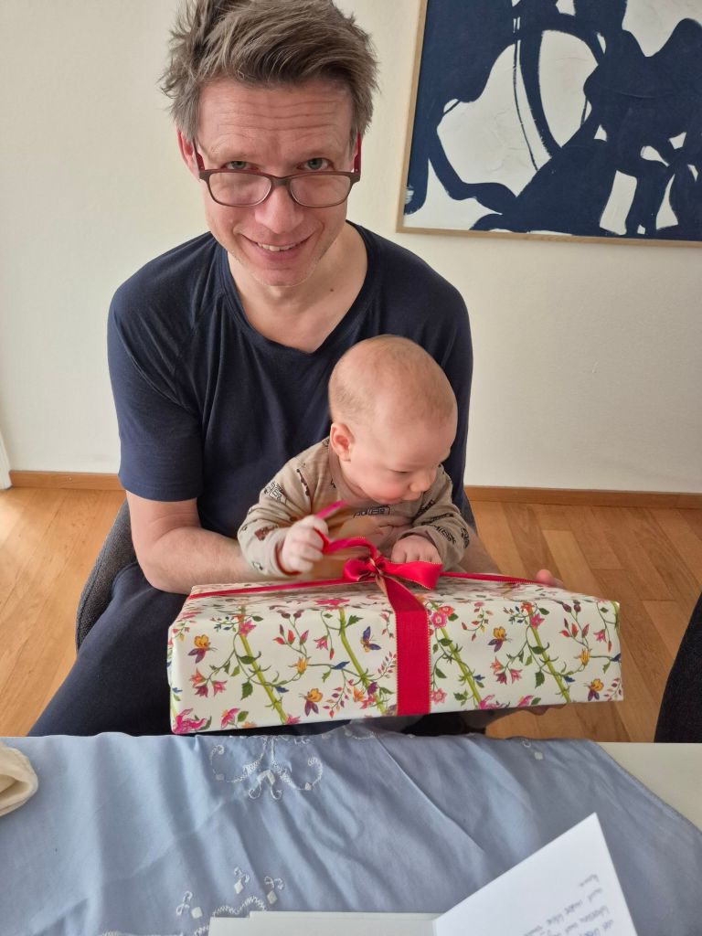 Am Abend habe ich mit meinen Eltern zu Abend gegessen, das war sehr schön und sie freuen sich unglaublich über Julian (und mich :D) und seine liebe, aufgeweckte Art. Er war so übermüdet und wollte/konnte nicht schlafen, der arme Kleine! Und dann hat er sich das erste Mal vom Bauch auf den Rücken gedreht!! Unglaublich 😀 Er war so perplex, dass er es grad ein 2. Mal direkt hintereinander gemacht hat und dann erstmal kurz geweint hat über die neue Perspektive. Als ich ihn um 21 Uhr im Zimmer in seinen Schlafsack gepackt habe, ist er sofort eingeschlafen und hat bis 5 Uhr durchgeschlafen. Er hat sich offensichtlich bitzeli verausgabt 😀