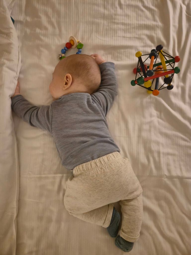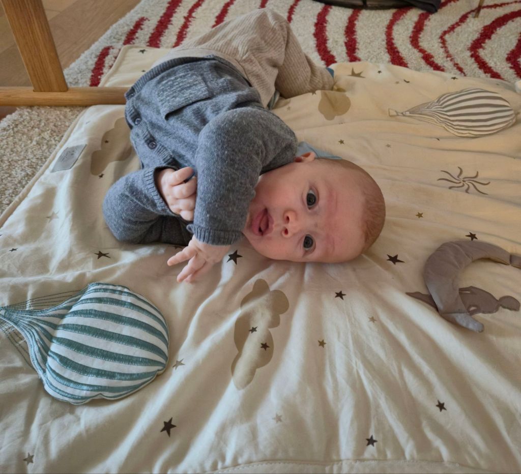 Später hat Julian mit dem Greifling gespielt und ist völlig erschöpft eingeschlafen 😆