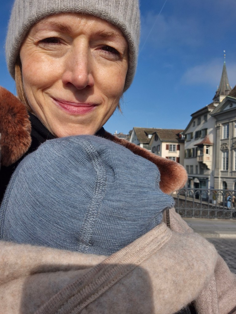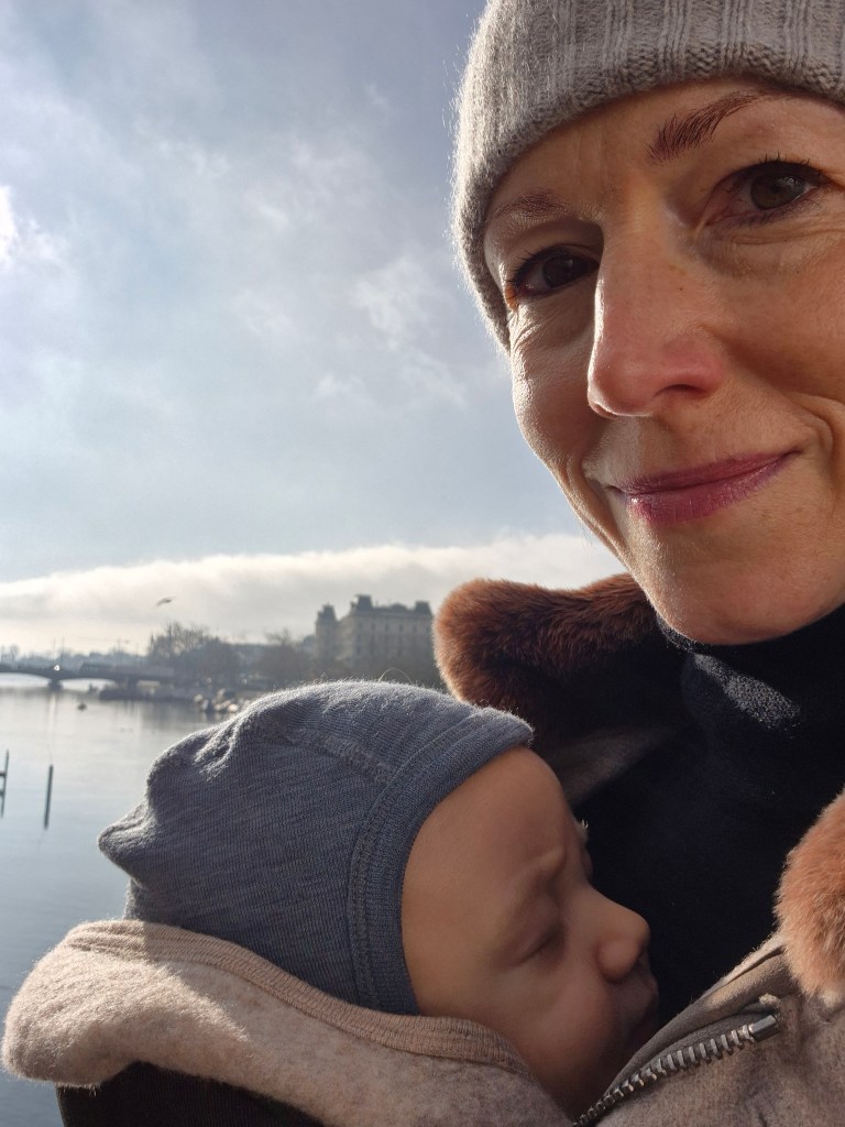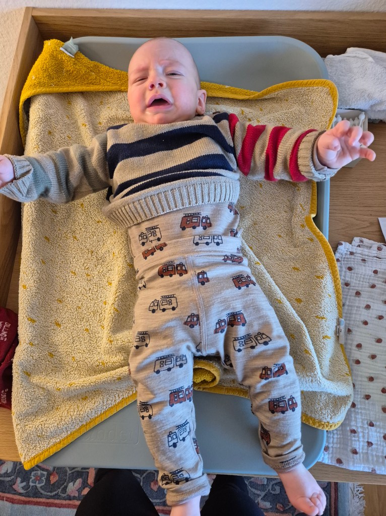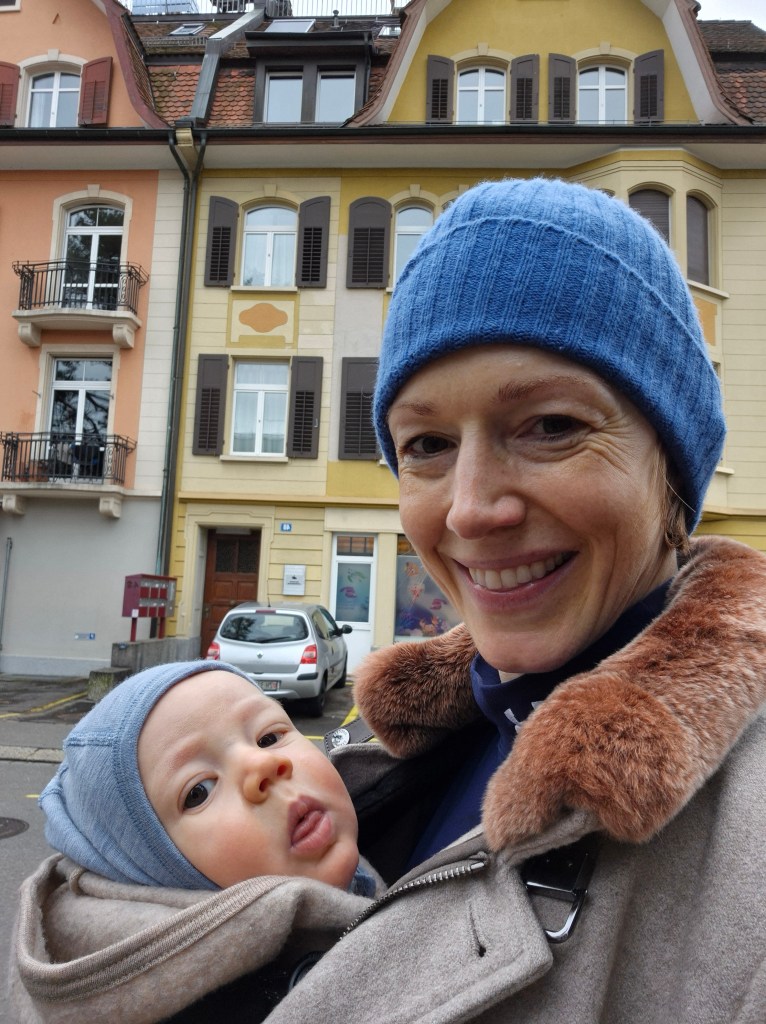 Rückbildungskurs bei Nina tut mir und meinem Körper so richtig gut. Aber am Morgen musste ich so rumrennen, weil es einen Windelunfall gab (ich MUSS einfach um 6 Uhr die Windel wechseln, sonst läuft alles raus) und ich noch schnell die Waschmaschine mit dem Schlafsack und anderen Kleider angeworfen habe. Nebenbei den Kleinen fertigmachen, massieren, stillen, mich fertigmachen…. So ein Stress am Morgen…