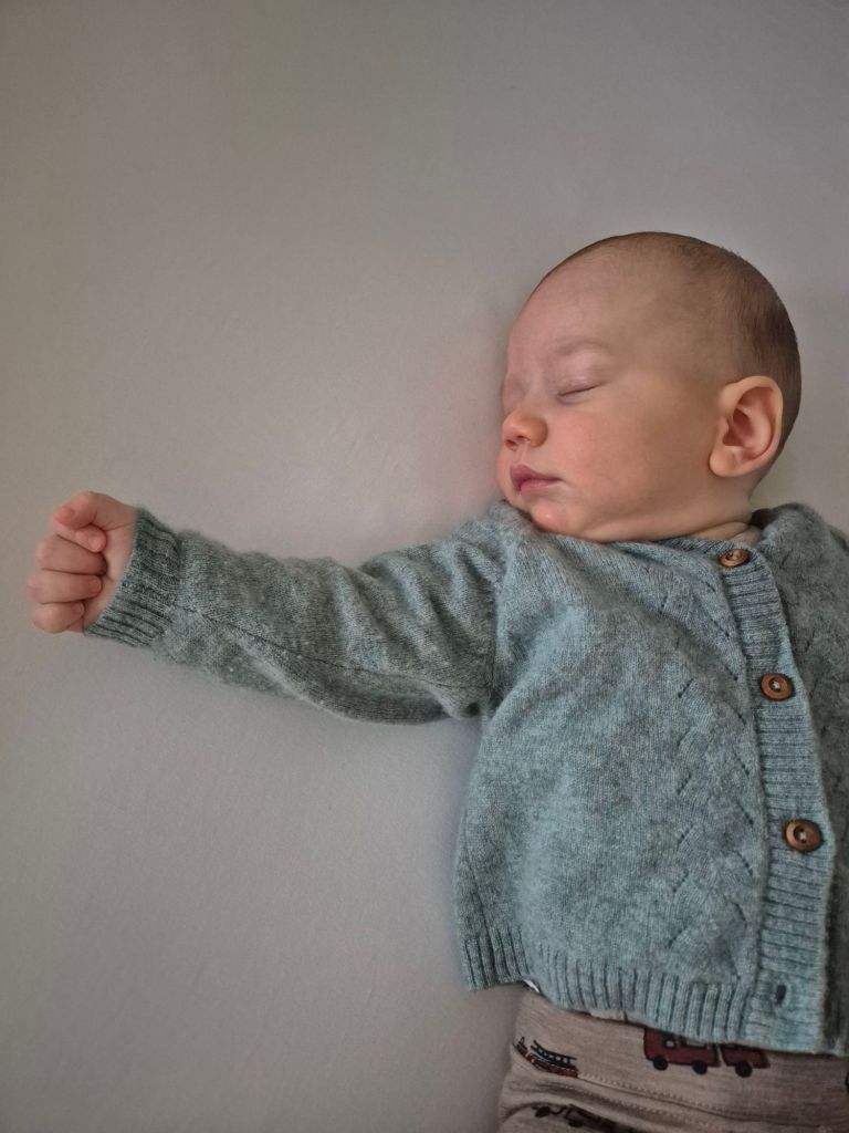 Julian hat viel geschlafen, er ist ein gewiefter kleiner Kerl, denn er jammert und wenn man ihn anschaut, dann lächelt er! 😄