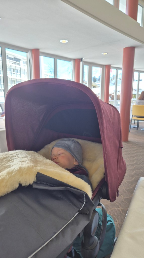 Julian war nach dem Kurs nudelfertig und ist mir noch auf dem Wickeltisch eingeschlafen 😀 Dann habe ich spontan im Altersheim zu Mittag gegessen und das war die richtige Entscheidung, das werde ich dort jedes Mal machen. Die kochen gut, man sitzt sehr schön, freundlicher Service und Julian braucht dann eh ein bisschen Erholung.