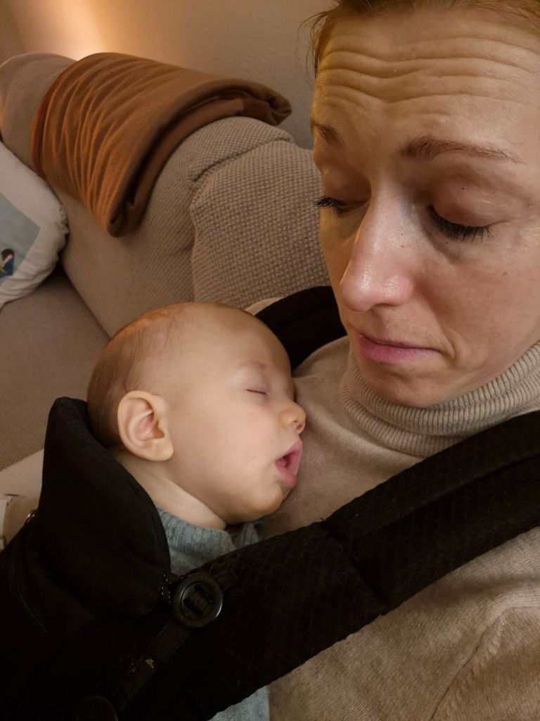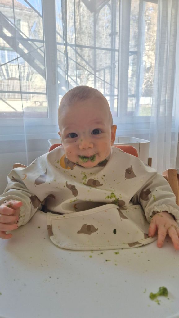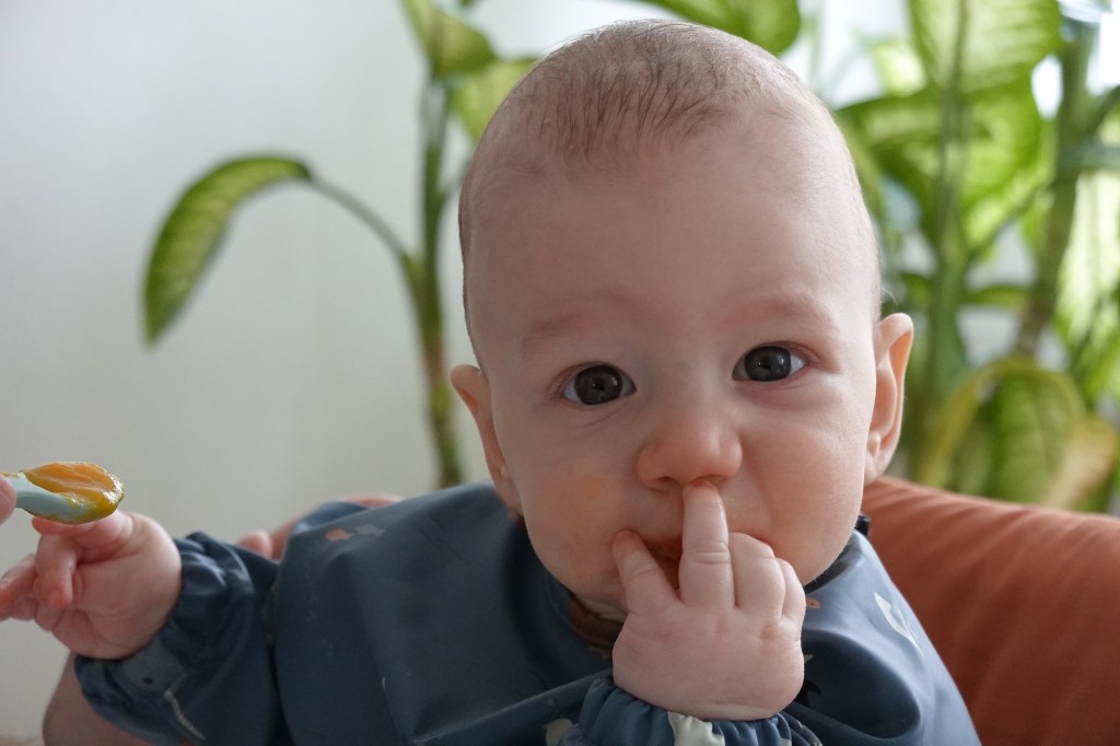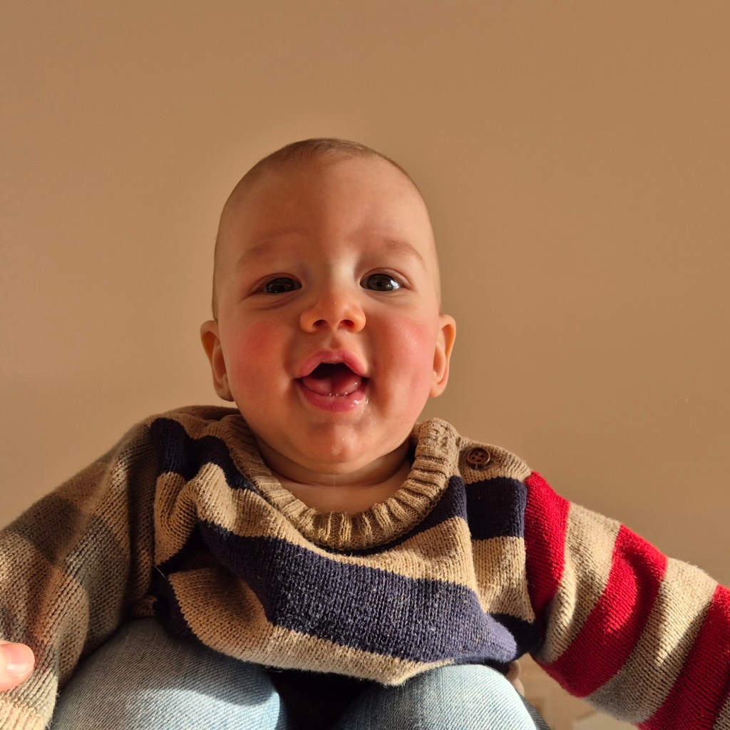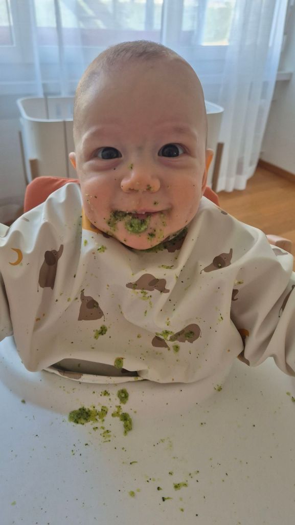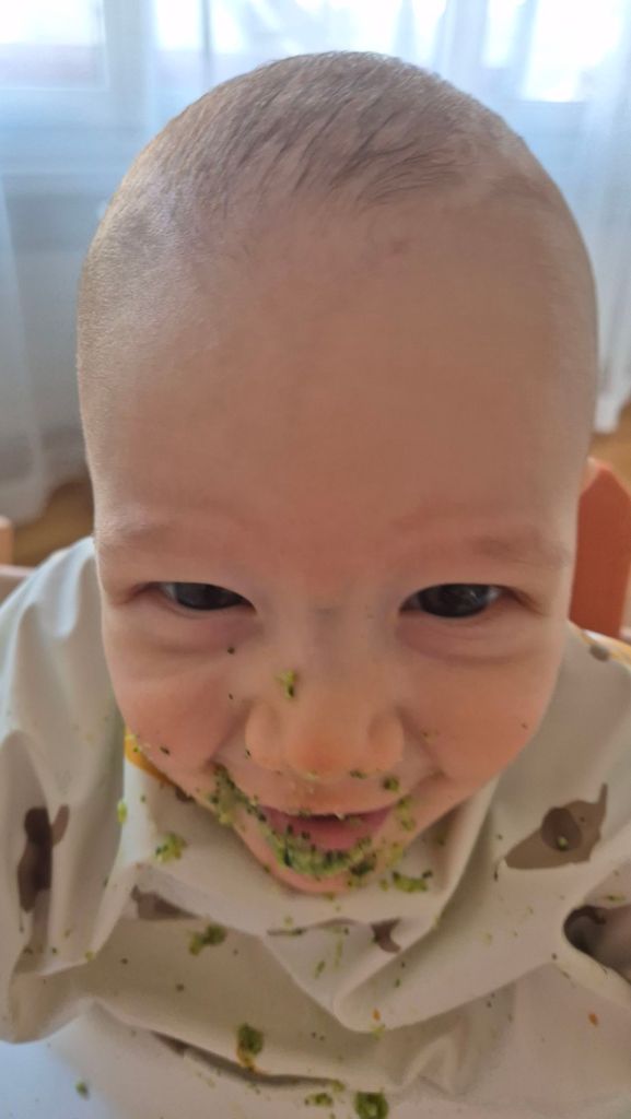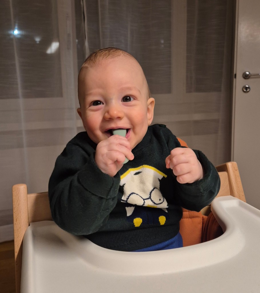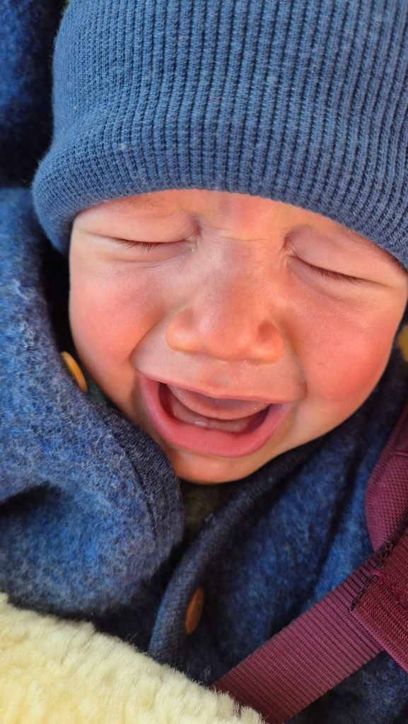 Julian kriegt den 2. Zahn! Deswegen weint er so und zieht die Unterlippe rein. Bald kann er mit uns mitessen 😄
