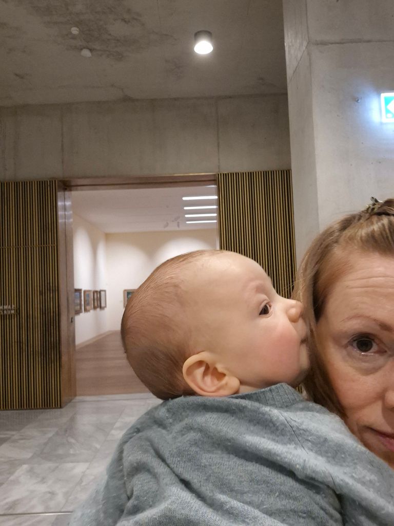 Zuerst Rückbildungskurs (war super, aber musste 2x stillen…), dann zuhause Mittagessen, Julian mag keinen Brokkoli, Erledigungen in der Stadt, dann 1 Std Kunsthaus. In der Merzbacher Sammlung die wunderschön farbige Kunst der „Blauen Reiter“ gefeiert. Julian ganz begeistert die Hände an den Spiegel gedrückt. Laut Jill schaut er mich so bewundernvoll an, wie Klaus 🥰