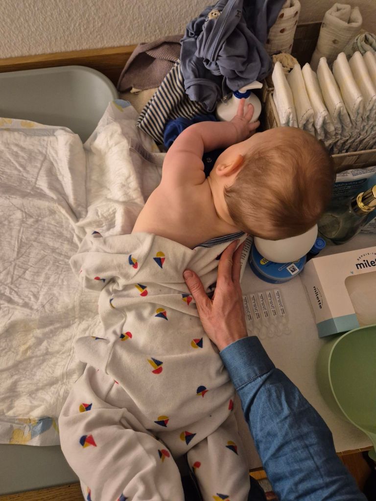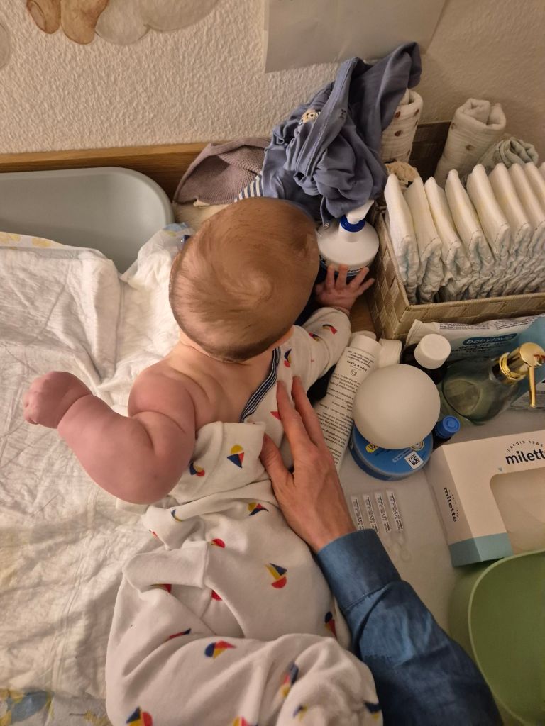 Da hat er auf dem Wickeltisch alles gegeben und erstmal „aufgeräumt“ 😊