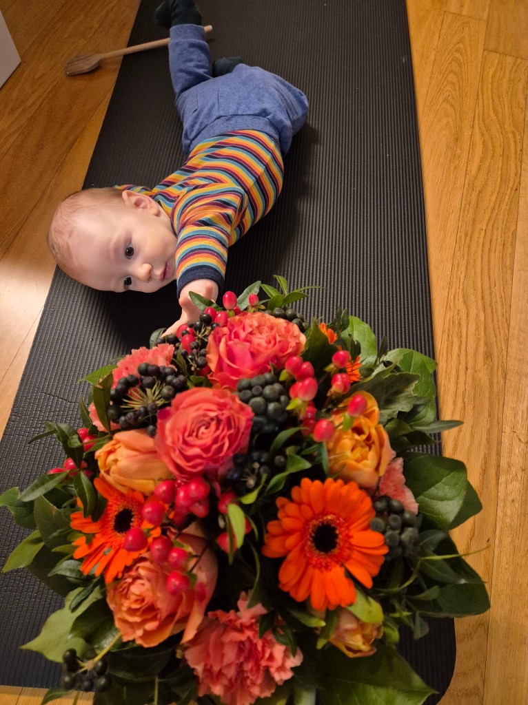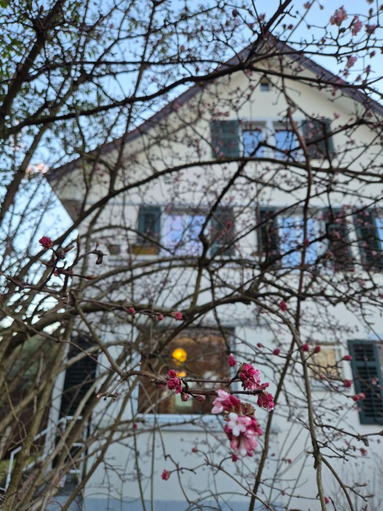 Die stückige Süsskartoffel war noch zu fr^üh für Julian, er braucht noch den Brei. Mit den Händen kann er noch nicht selber essen. Wir haben es auch an die frishce Luft geschafft und ich habe die ersten Blütenknospen entdeckt! Wunderschön… 🙂