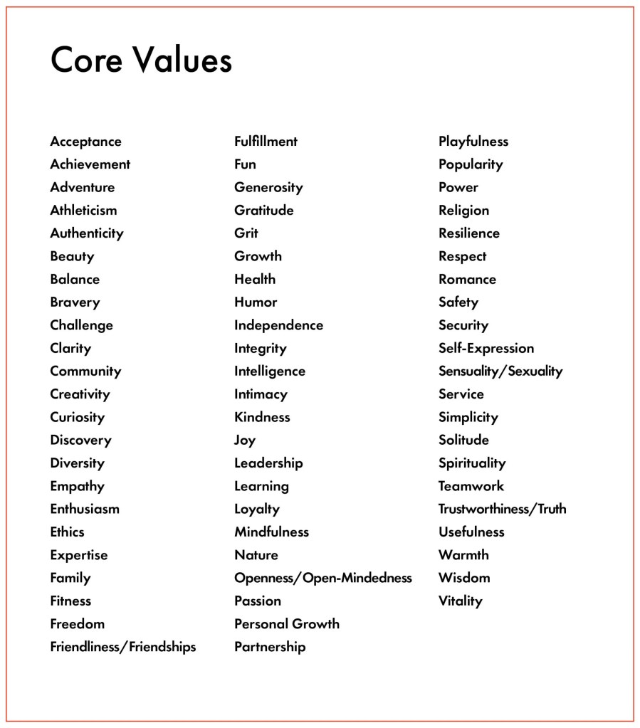 Und aus der folgenden Liste, was sind meine drei Kern-Werte? Eine sehr spannende Auswahl…