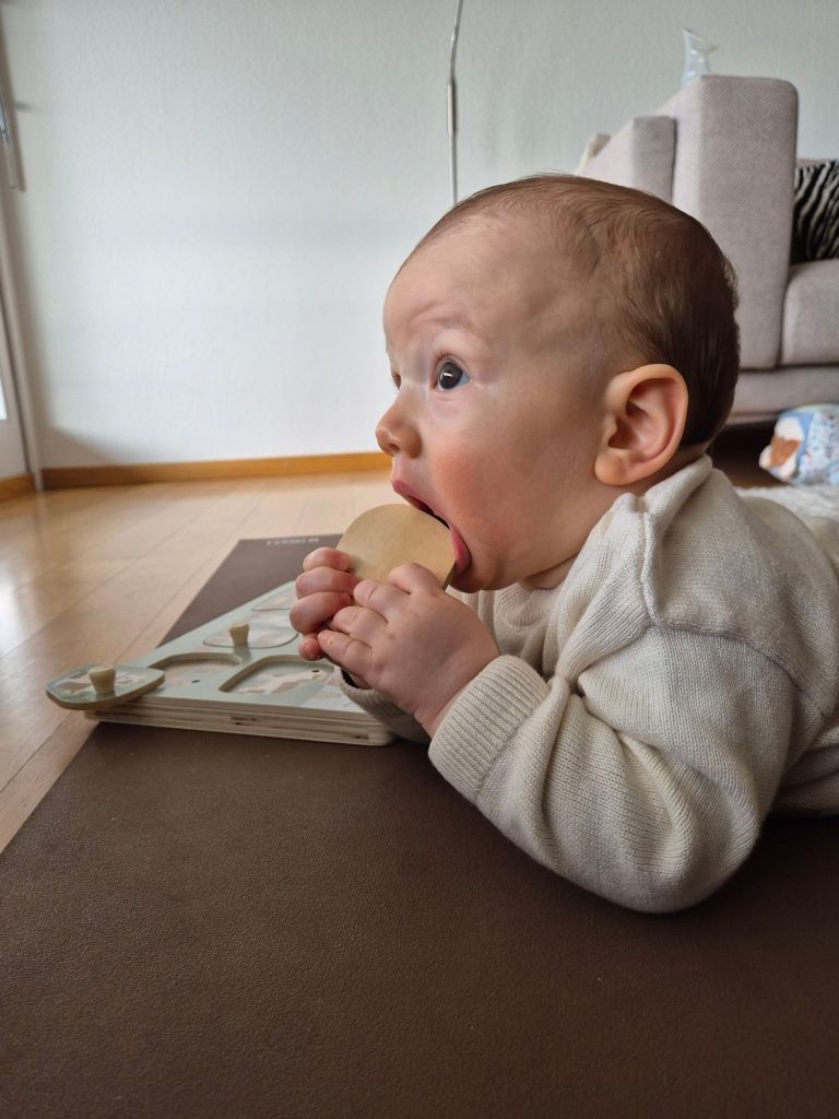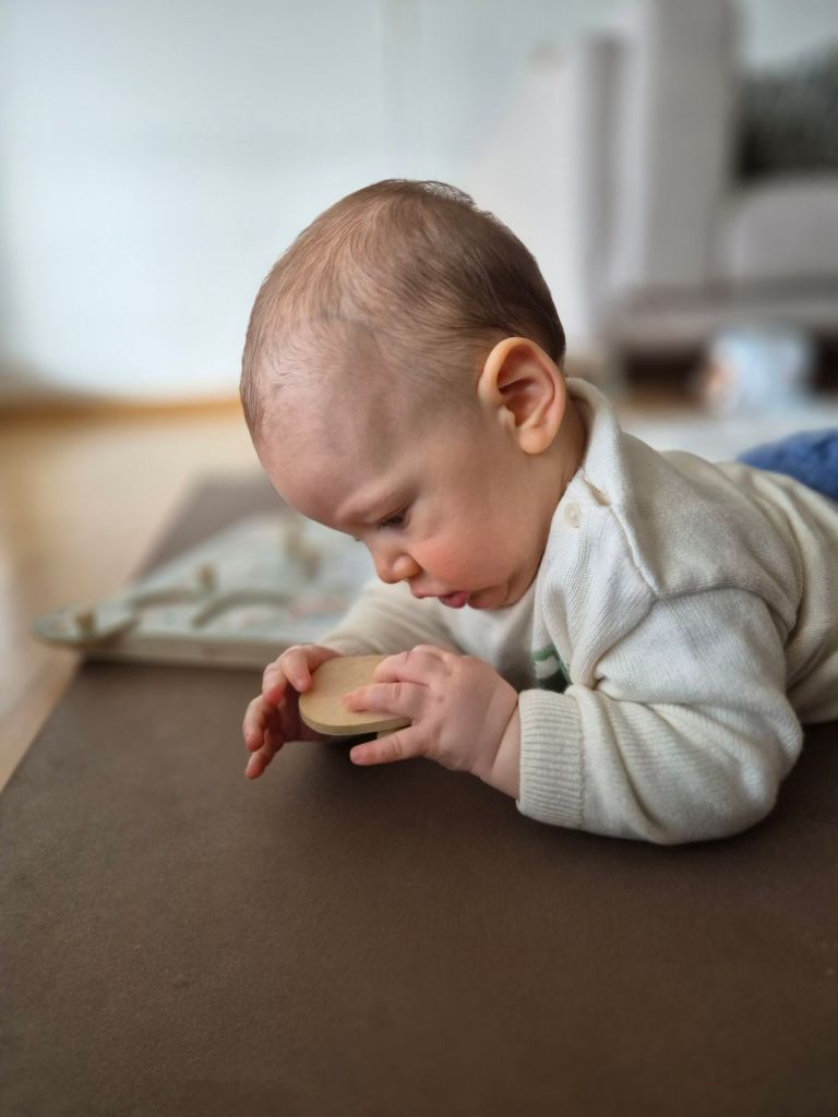 Es ist so schön zu sehen, wie Julian sich selber beschäftigen kann und hingebungsvoll und völlig gedankenverloren sich mit einem spielzeug beschäftigt, es anschaut und minutenlang untersucht von allen Seiten.