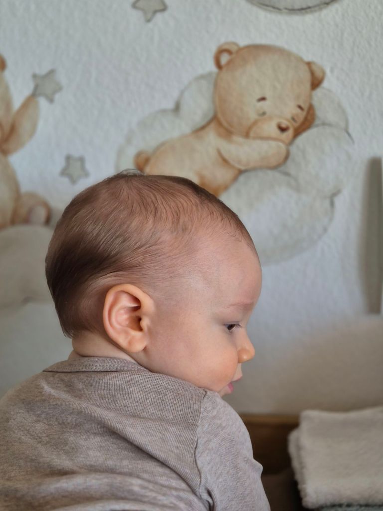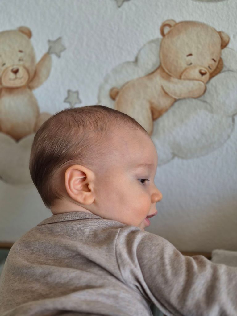 - Auf dem Wickeltisch geht nun voll die Post ab, er dreht sich schnell auf den Bauch und räumt dann erstmal alles aus dem Weg, streichelt die Bärchen an der Wand und lässt sich kaum die Windel anziehen