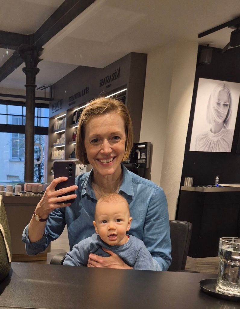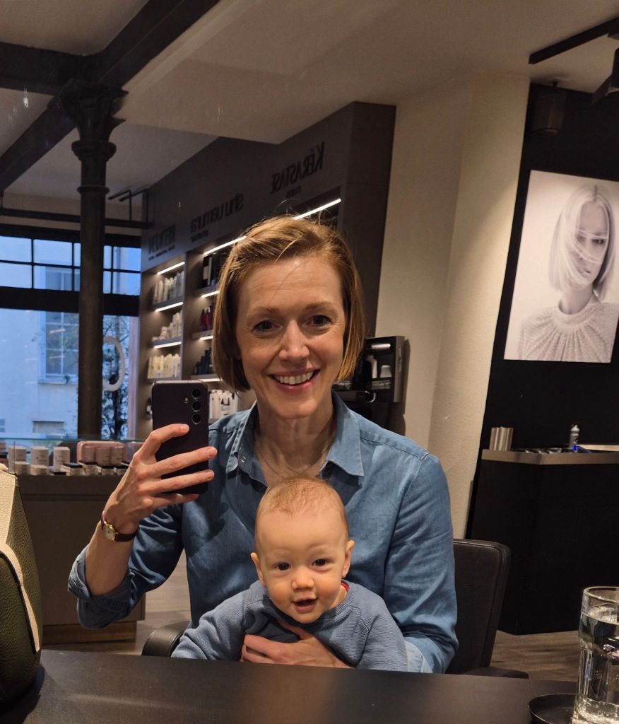 Heute waren wir das erste Mal mit Julian beim Coiffeur! Stefania hat ungefähr 5 Härchen geschnitten 😄