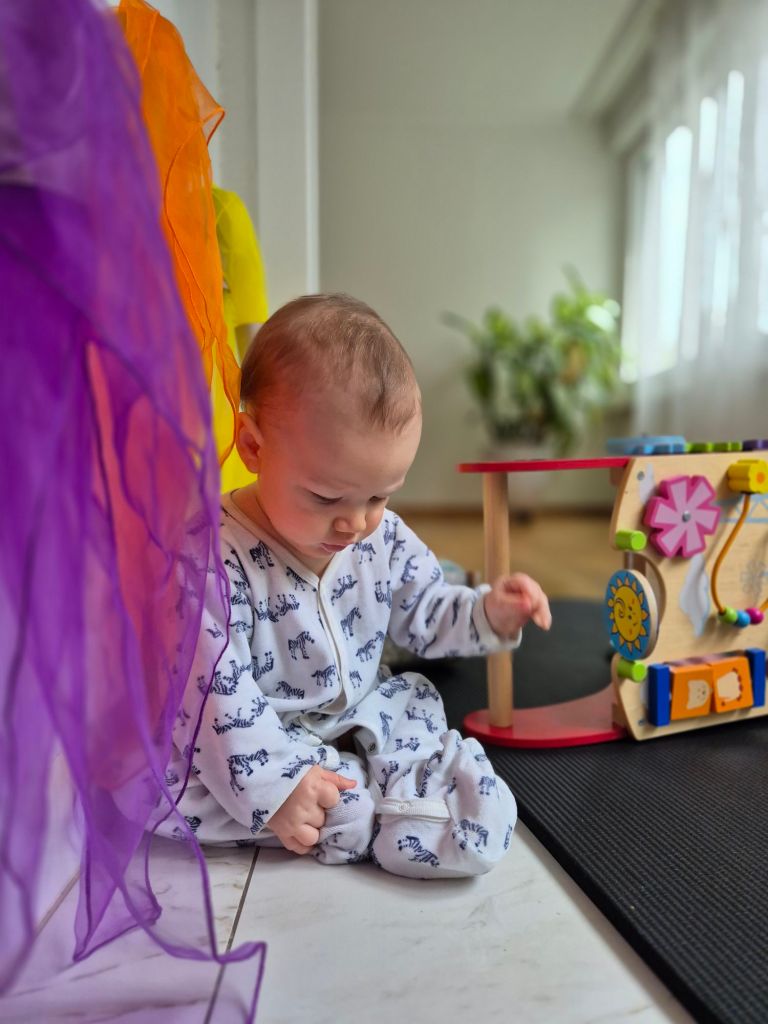 Petra, die Familienberaterin, hatte mir Mittags angerufen, dass in begleiteten Bewegungsraum spontan ein Platz frei wurde. Dort sind wir hin und das war genau richtig für uns, damit wir aus unser stillen Bubble raus sind!