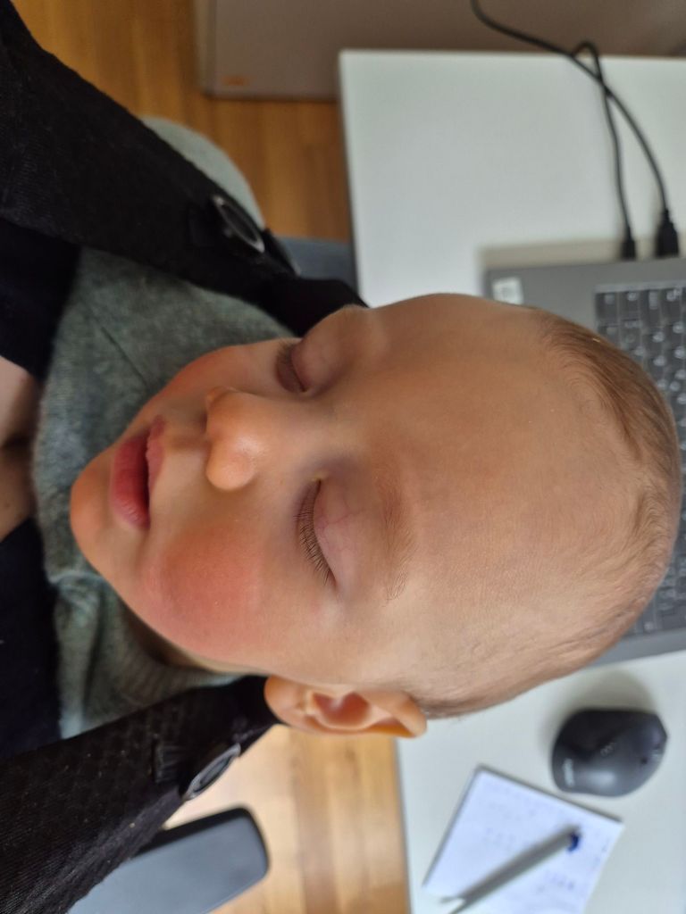 Julian hat 2 Std am Nachmittag in der Trage geschlafen. Was für eine Erholung für ihn.
