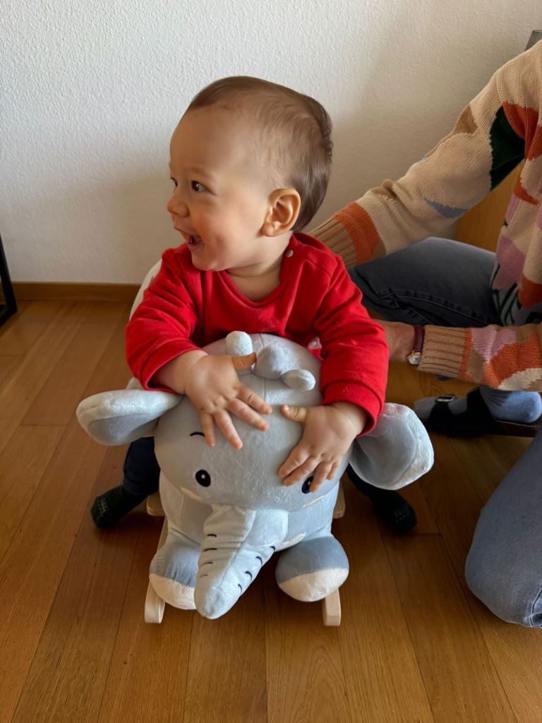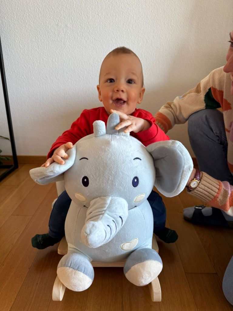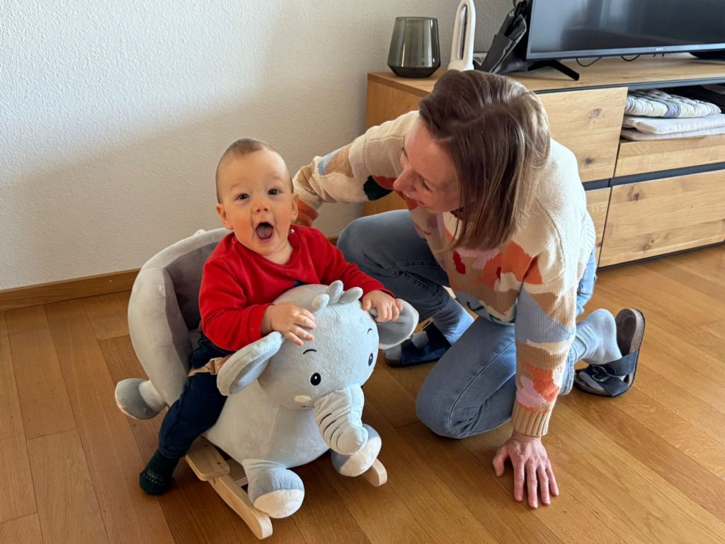 Beim Schwimmen ist Julian total abgegangen: er hat gejauchzt und wild gestrampelt, als wir ins Hallenbad gelaufen sind. Wir haben neue Griffe probiert und er hat so toll mitgemacht, hat viel Vertrauen und so viel Spass. Er strampelt und planscht wie wild!