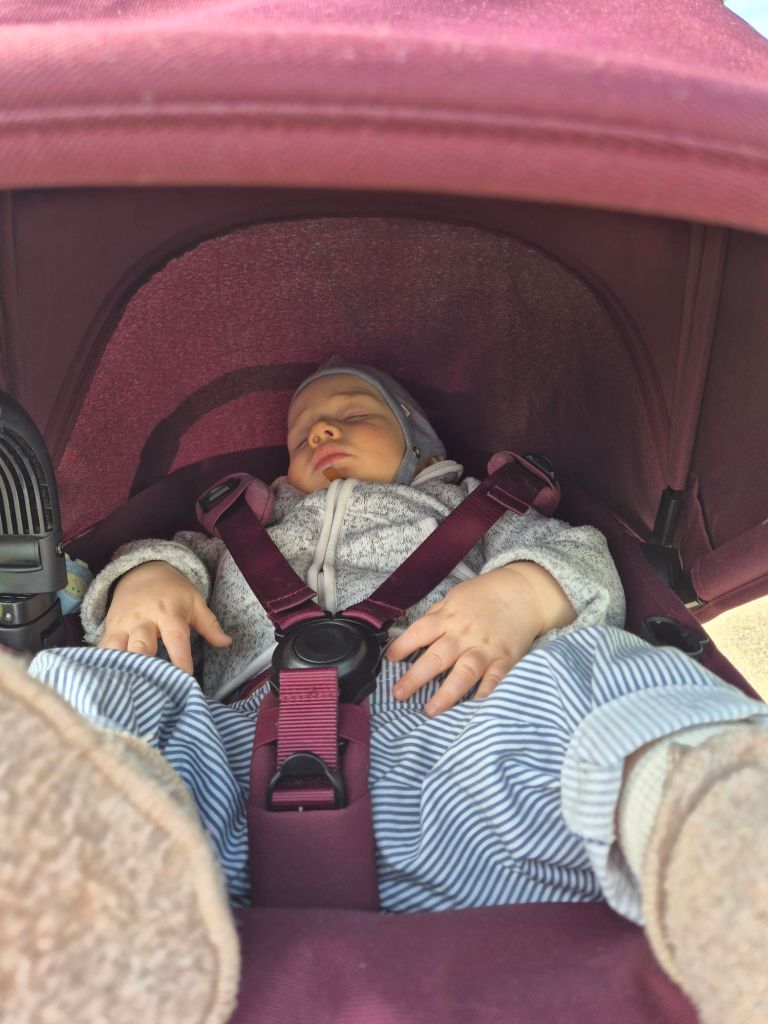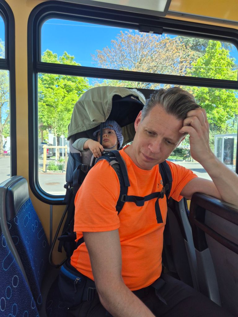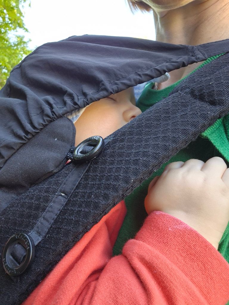 Aber am Nachmittag war alles durcheinander. Wenig gegessen, wenig geschlafen aber irgendwann konnte er dann einschlafen im der Trage.