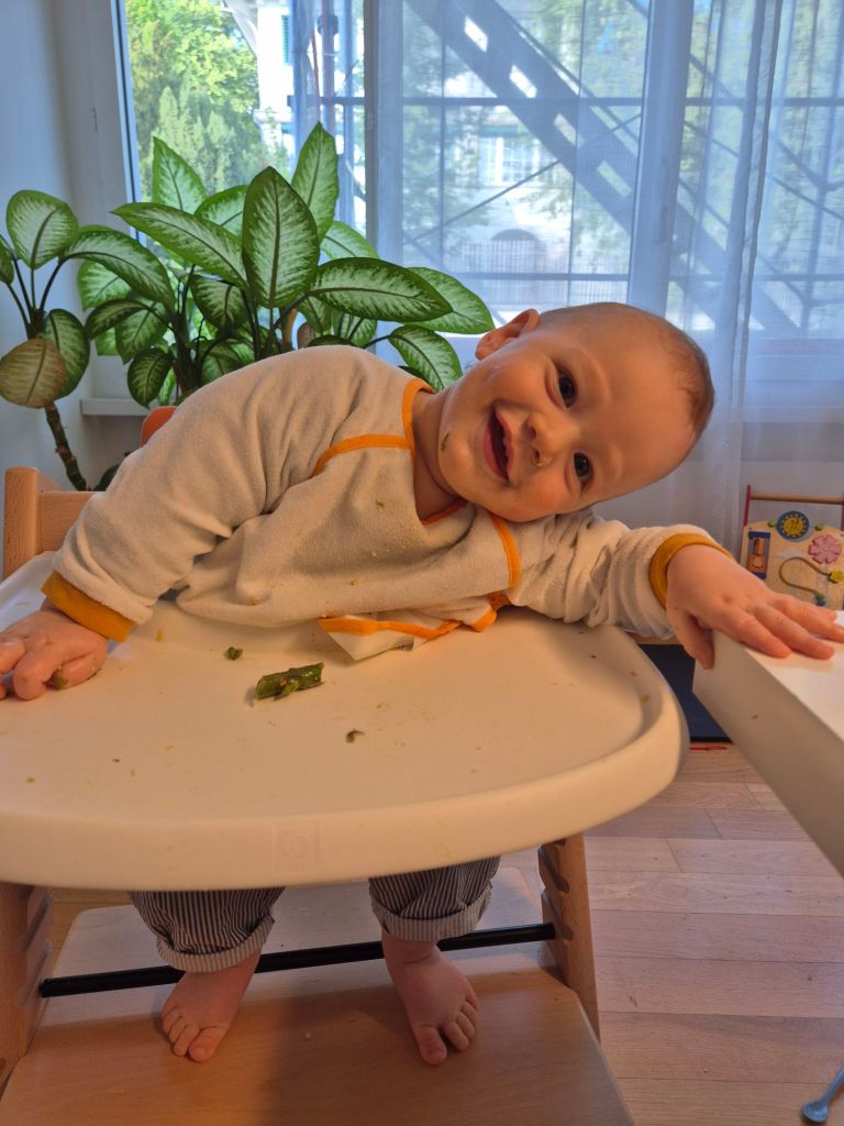 In der Familienberatung anschliessend sagte mir die Beraterin, wie gut Julian sich offensichtlich entwickeln würde! Wir könnten sehr stolz und zufrieden sein, hinsichtlich schlafen, essen, Motorik und sein Beziehungsverhalten. Er ist so ein zufriedenes Baby und hat einen starken eigenen Kopf. Das ist gut so!